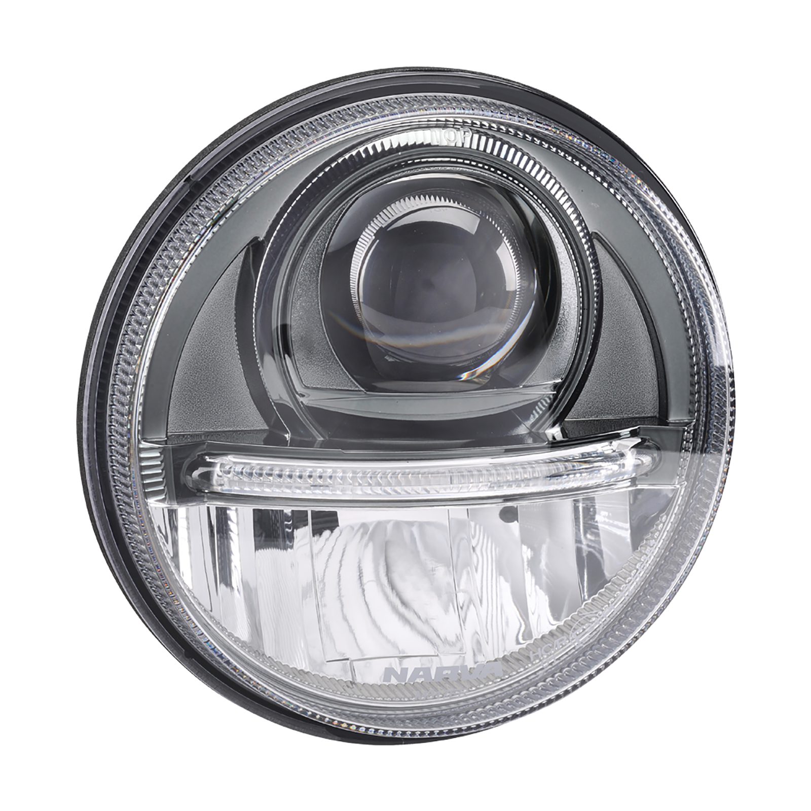 Narvas modern and stylish 5 3/4 L.E.D headlamp has been developed as a direct replacement for halogen headlamp inserts and includes a H4 connector for easy retrofit. Styled with a black chrome finish combined with precision free form optics the 5 3/4″ headlamp has been specifically designed and tested for OEMs to deliver a modern appearance on transport vehicles.