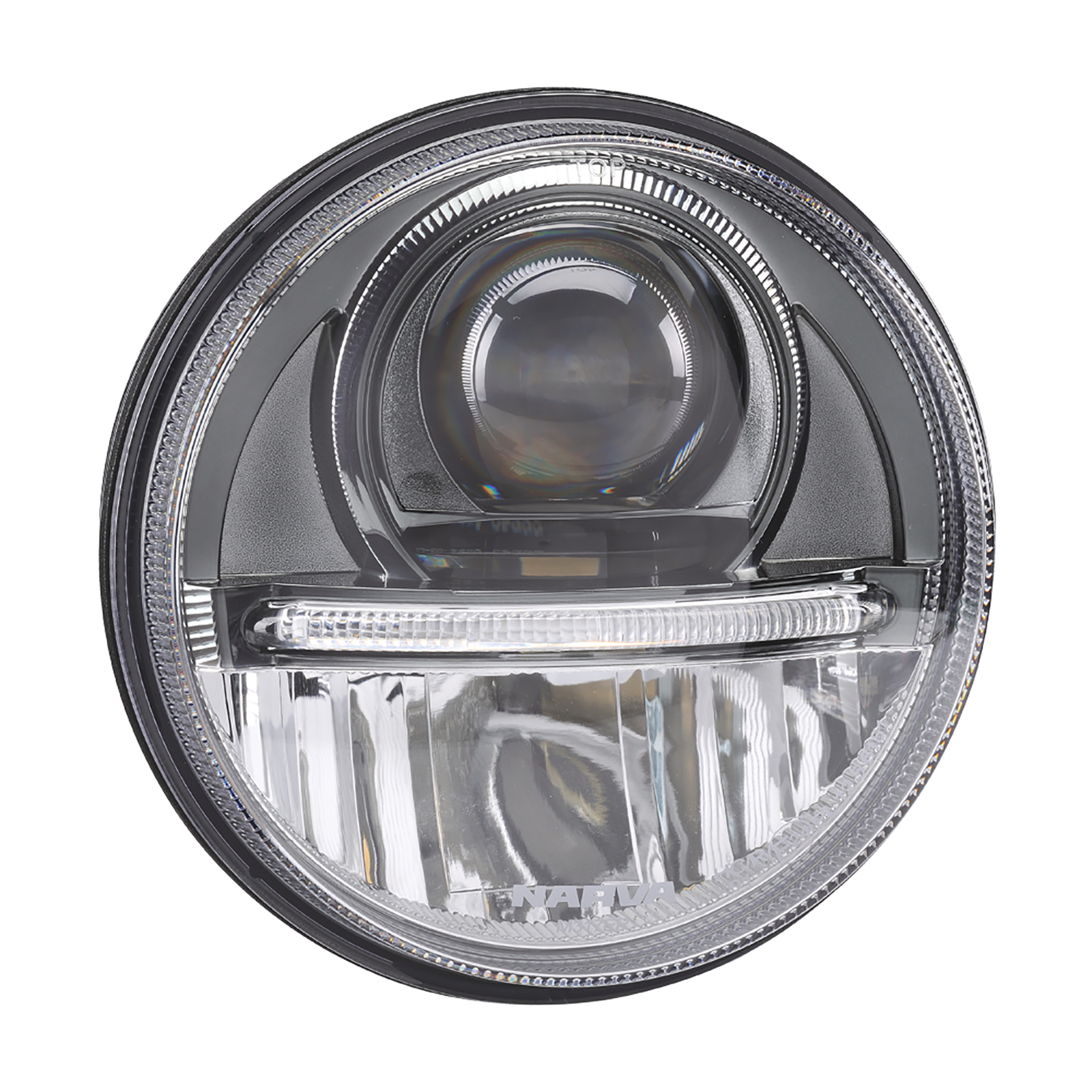 Narvas modern and stylish 5 3/4 L.E.D headlamp has been developed as a direct replacement for halogen headlamp inserts and includes a H4 connector for easy retrofit. Styled with a black chrome finish combined with precision free form optics the 5 3/4″ headlamp has been specifically designed and tested for OEMs to deliver a modern appearance on transport vehicles.