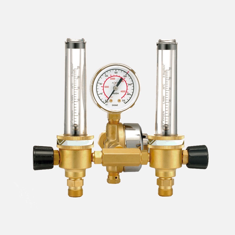 Single Stage Dual Flowmeter Regulators Harris StyleFEATURES Single stage construction Dual flowmeter Forged brass body for maximum strength Chrome bonnet Neoprene diaphragms Sintered metal inlet filter to trap impurities Precision engineered pressure compensated design flowmeter for precise flow Flowmeter with easy to read tube and virtually unbreakable transparentpolycarbonate outer cover for strength and 360 degree visibility Side entry Outlet pressure at 35Bar Present MIGTIG applications for light to medium duty Net Weight 16kgeach for 1012FL 20kgeach for 252FL