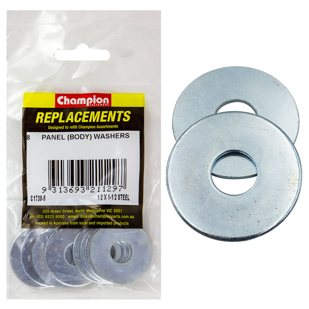 Champion 1/2in x 1-1/2in Flat Steel Panel (Body) Washer -8pk