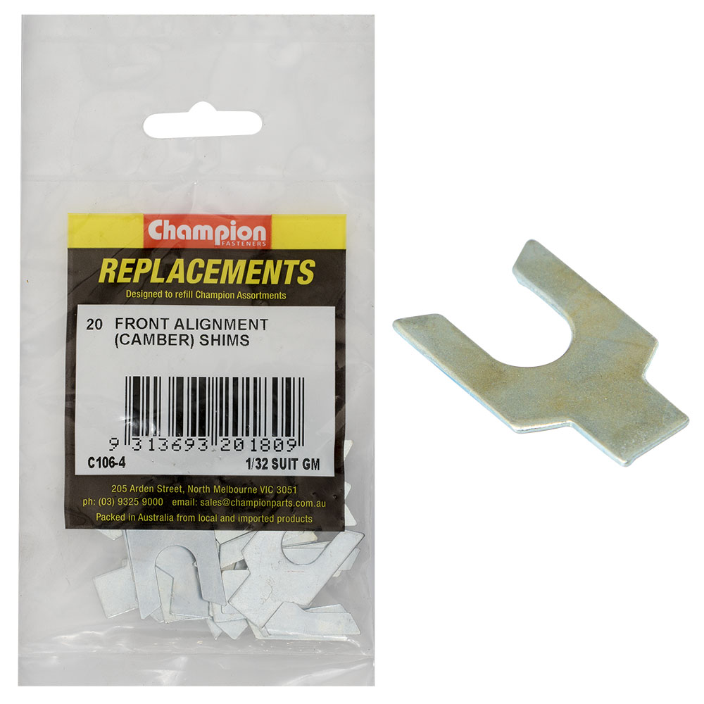 C106-4 | Champion 1/32in Wheel Alignment Shim -Suit GM -20pk Specifications Suitable for GM Vehicles Pack Size: 20