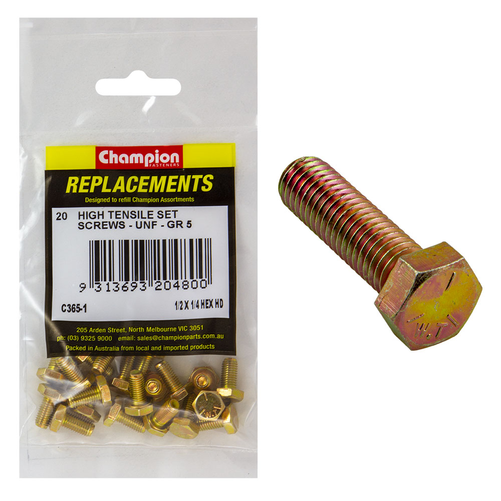C365-1 | Champion 1/4in x 1/2in UNF Set Screw -Gr5 -20pk