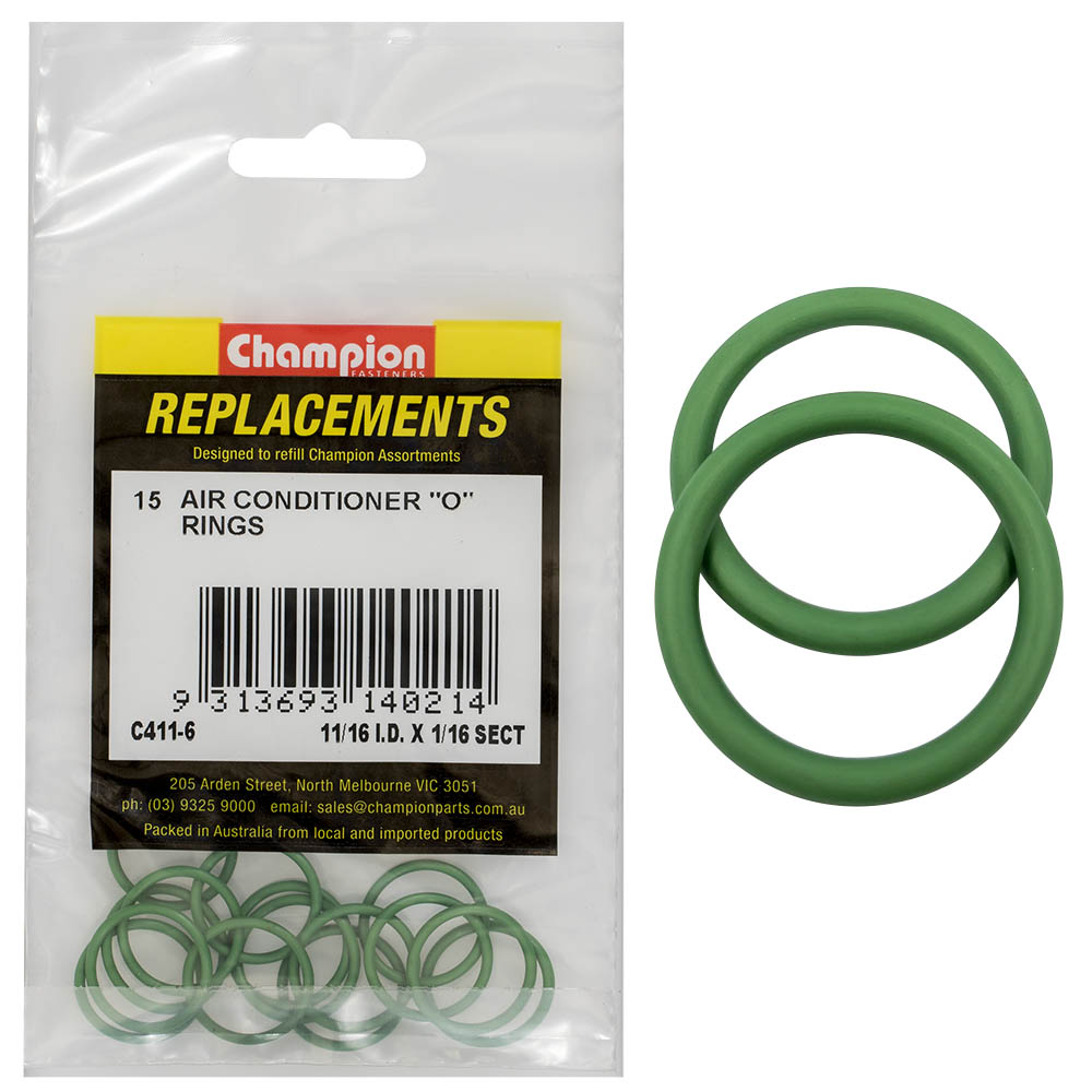 Champion 11/16 (I.D.) x 1/16in Air Cond. (Hmbr) O-Rings-15pk