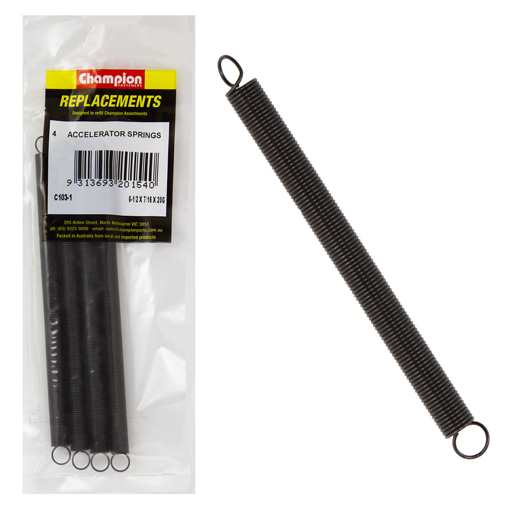 C103-1 | Champion 165 x 11 x 0.9mm Accelerator Spring-4pk Specifications Plain Finish Pack Size: 4