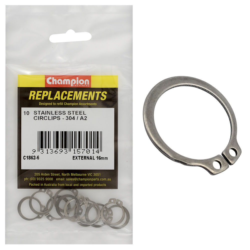 Champion 16mm Stainless External Circlip 304/A2 -10pk