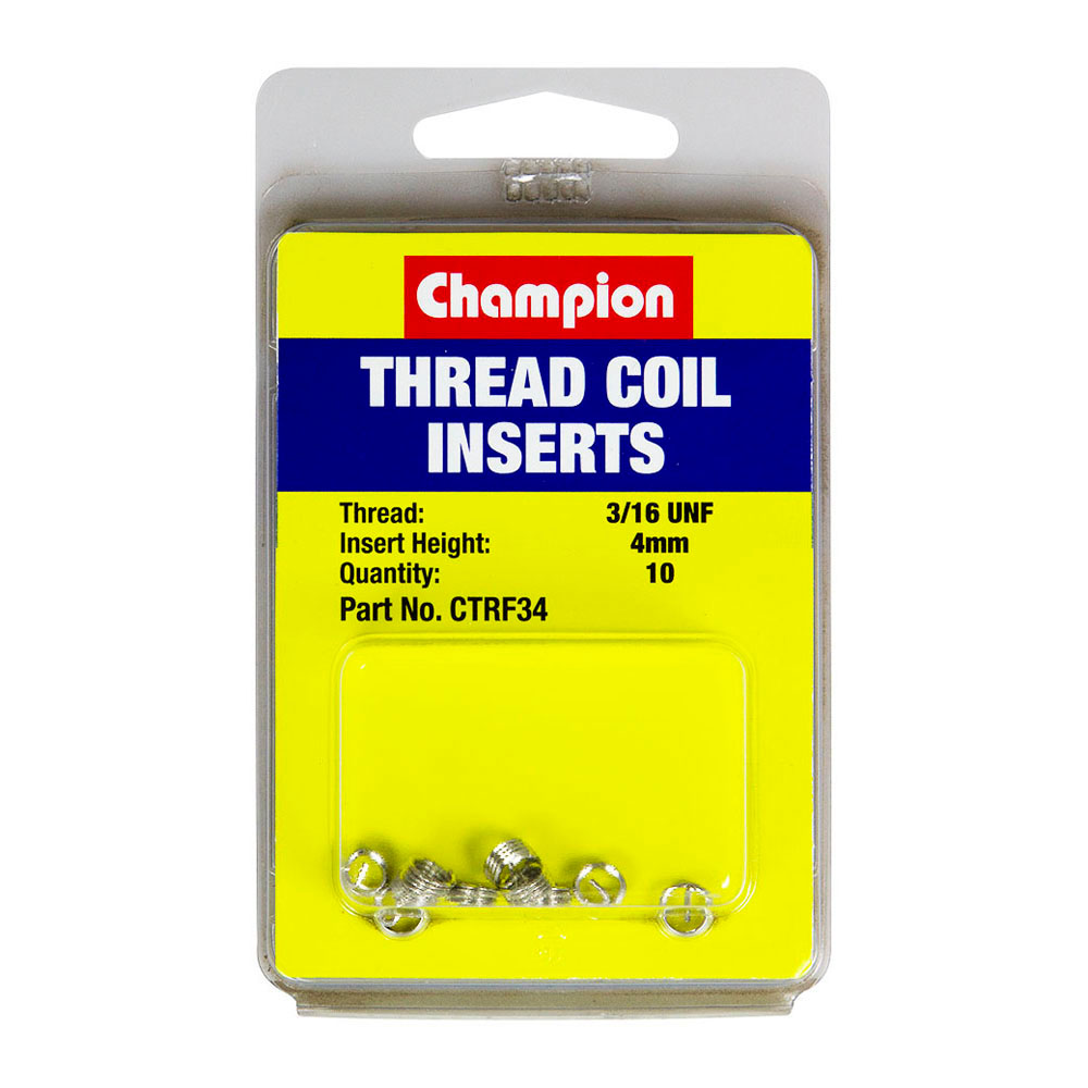 CTRF34|Champion 3/16in UNF x 4mm Thread Insert Refills -10pk Thread Coil Inserts Suits Cast Iron Aluminium and Ferrous Steel Thread: 3/16 UNF Insert Height: 4mm Quantity: 10