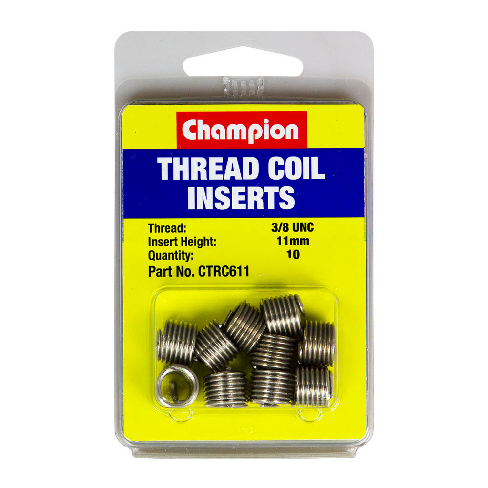 CTRC611|Champion 3/8in UNC x 11mm Thread Insert Refills -10pk Thread Coil Inserts Suits Cast Iron Aluminium and Ferrous Steel Thread: 3/8 UNC Insert Height: 11mm Quantity: 10