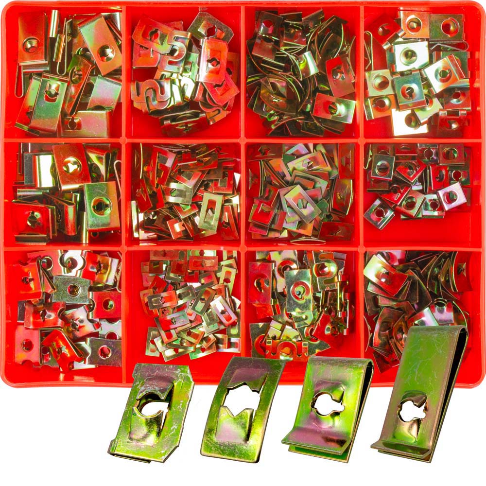 CA380 | 390PC SPEED NUT ASSORTMENT U and Flat Types Zinc Passivated 12 Sizes: 3/32 to 3/16 Dia. 390 Pieces Replacement Packs Available Part # Size Pack Qty C380-1 8G Screw 31/32 x 7/16 20 C380-2 10G Screw 13/16 x 1/2 20 C380-3 6G Screw 21/32 x 7/16 20 C380-4 10G Screw 1/2 x 11/16 20 C380-5 1/8 Stud 1/2 x 5/16 50 C380-6 3/32 Stud 7/16 x 1/4 50 C380-7 3/16 UNC 5/8 x 3/8 50 C380-8 3/16 Stud 5/8 x 3/8 50 C380-9 10G Screw 15/32 x 11/16 20 C380-10 8G Screw 21/32 x 7/16 20 C380-11 8G Screw 13/32 x 11/32 20 C380-12 10G Screw 21/32 x 13/32 50