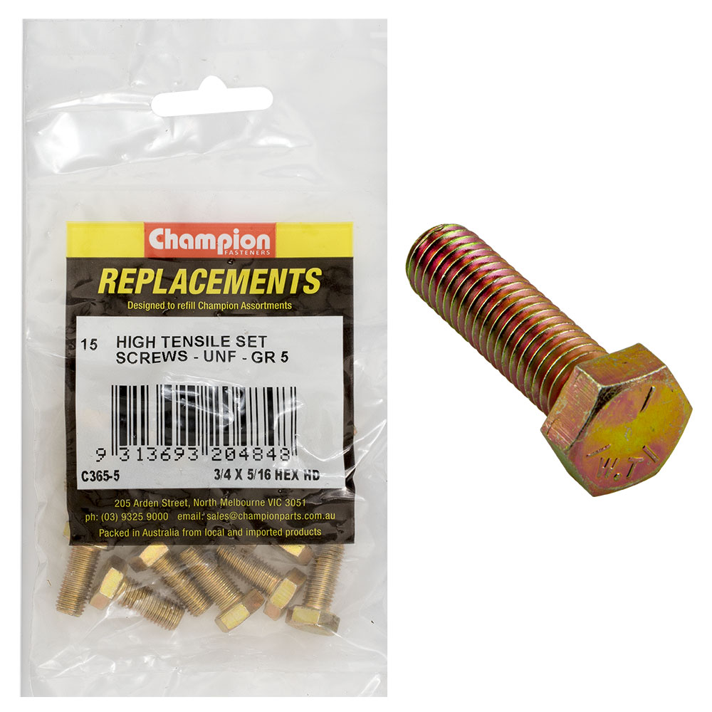 C365-5 | Champion 5/16in x 3/4in UNF Set Screw -Gr5 -15pk