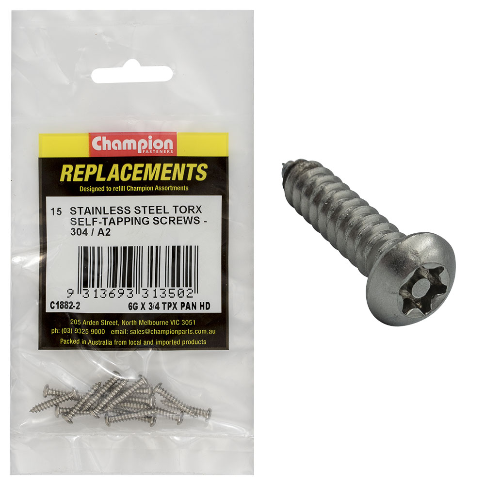 Champion 6G x 3/4in Self-Tapping Screw Pan Tpx 304/A2 -15pk