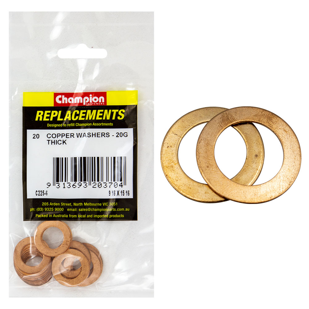 C225-6 | Champion 9/16in x 15/16in x 20G Copper Washer -20pk