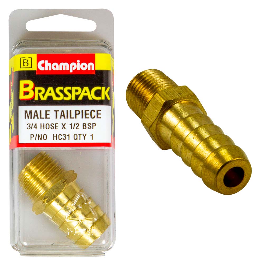 HC31 | Champion Brass 3/4in Male Hose Barb x 1/2in BSP Description Male Tail Peice 3/4 x 1/2 Pack Size: 1