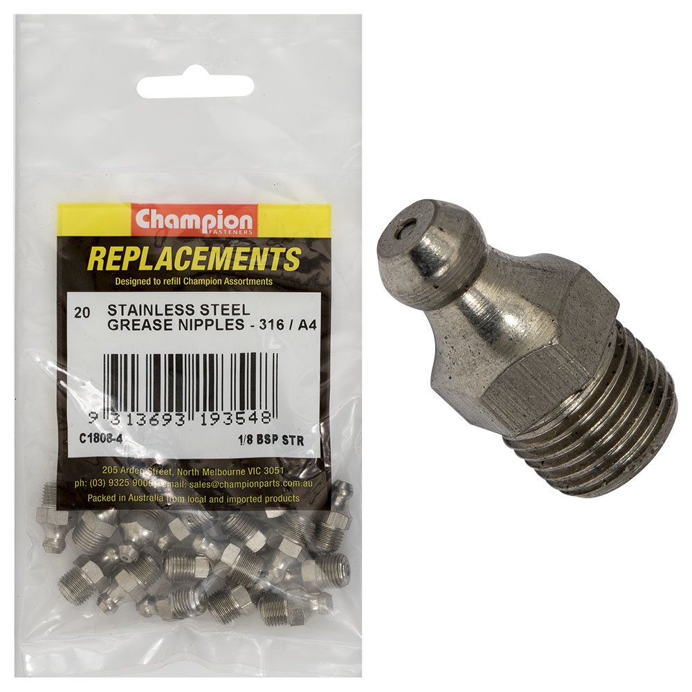Champion Grease Nipple Stainless 1/8in BSP Str 316/A4 -20pk