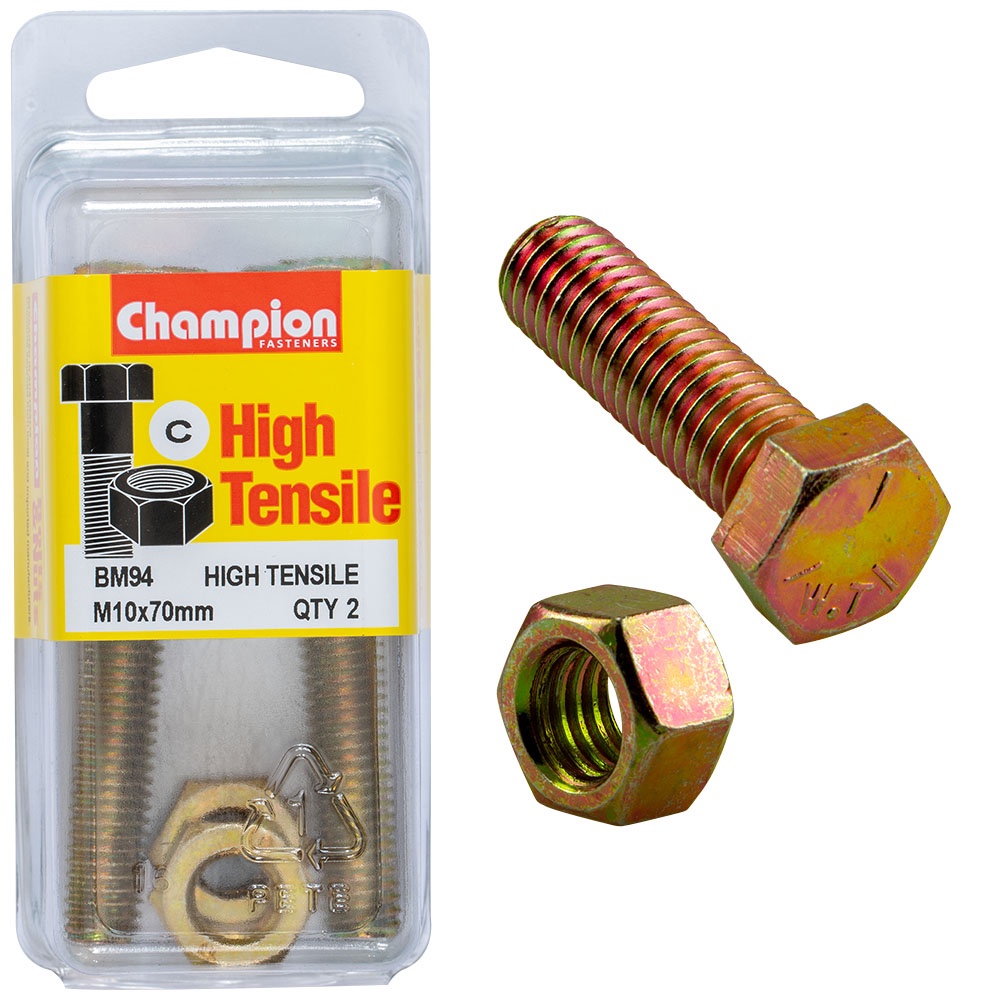 BM94 | Champion Hex Set Screw High Tensile M10x70mm Grade 8.8 – 2pk Specifications M10x70mm METRIC Zinc Plated HIGH TENSILE GRADE 8.8