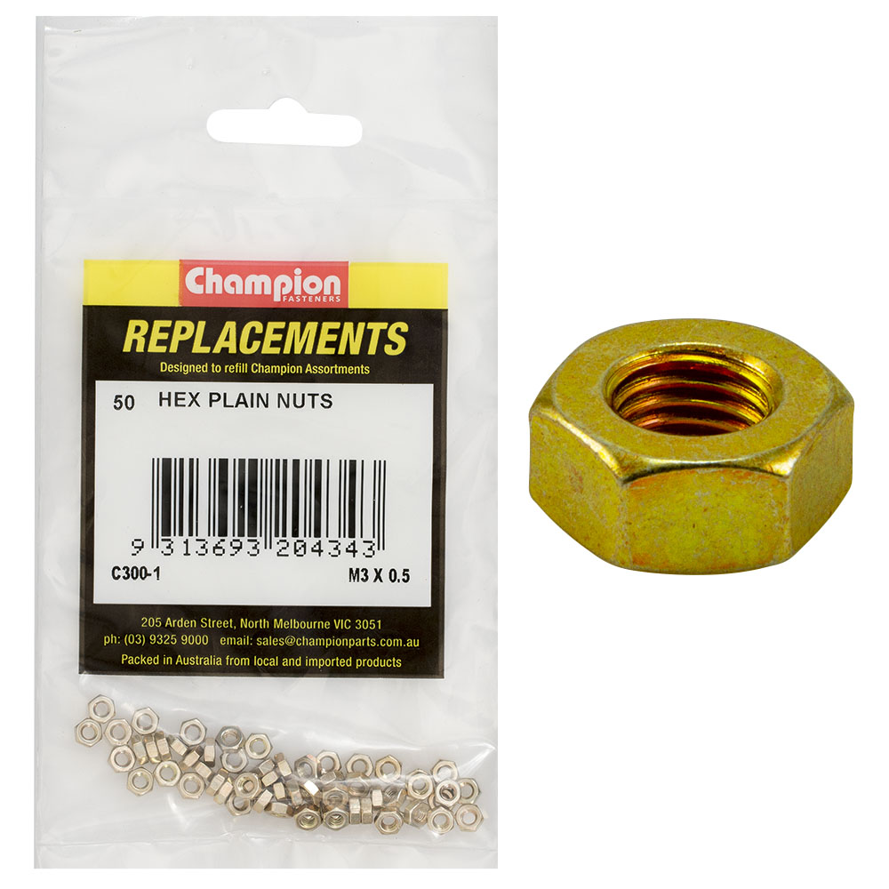 Champion M3 x 0.5 Plain Hex Nut -50pk