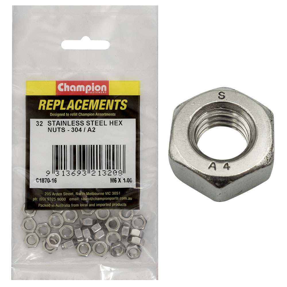 Champion M6 x 1.00 Stainless Hex Nut 304/A2 -32pk