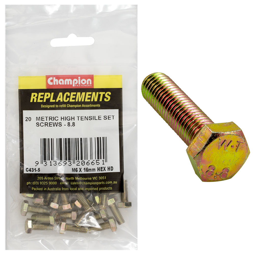 Champion M6 x 16mm x 1.00 Set Screw -Gr8.8 -20pk