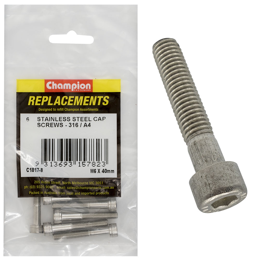 Champion M6 x 40mm Socket Cap Screw 316/A4 -6pk