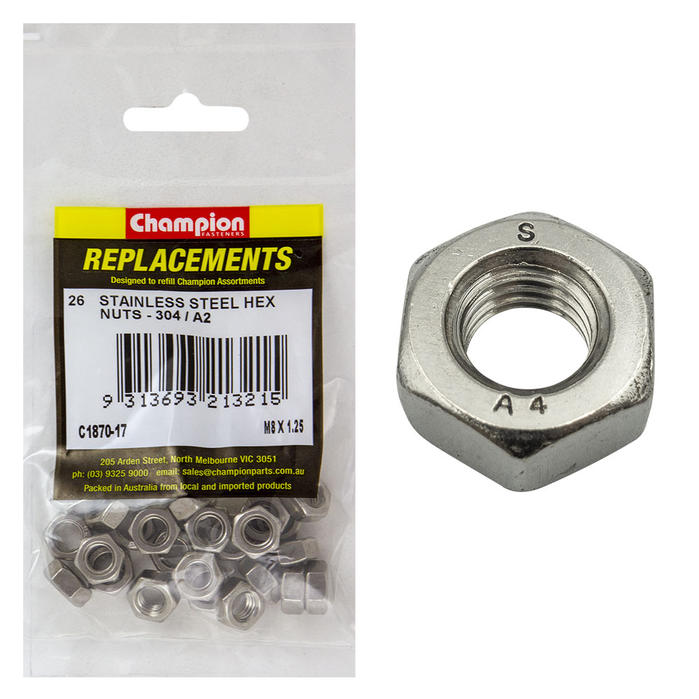 Champion M8 x 1.25 Stainless Hex Nut 304/A2 -26pk
