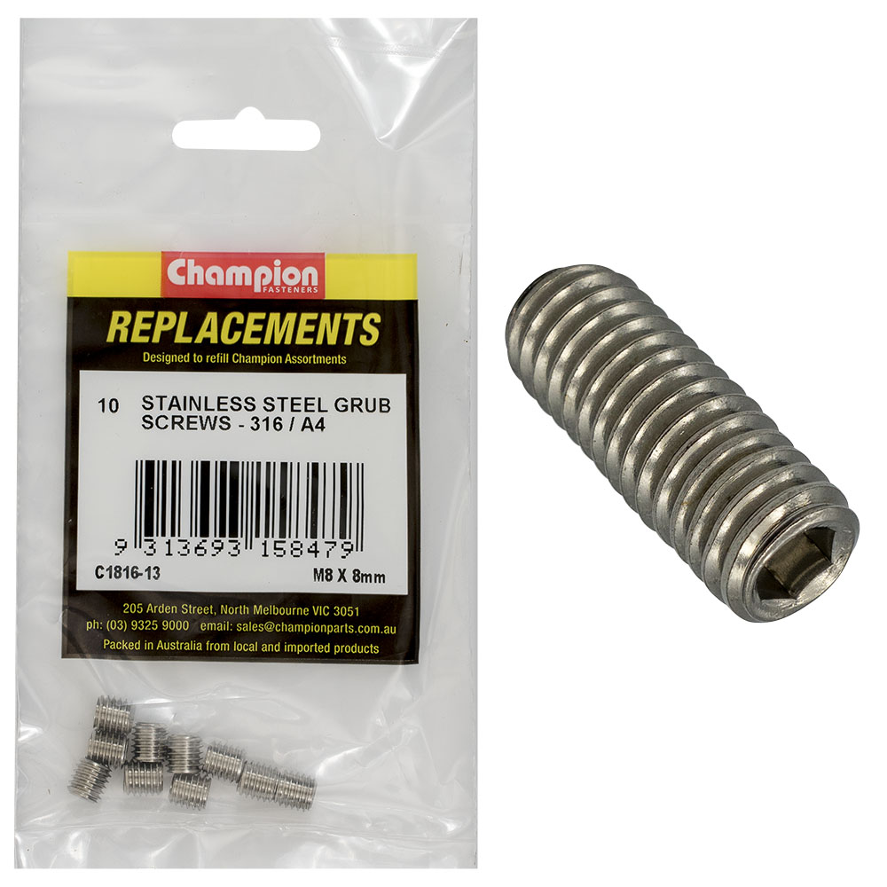 Champion M8 x 8mm Metric Grub Screw 316/A4 -10pk