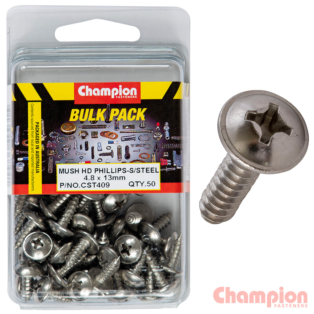 Champion S/Tapping Screws – Mushroom Head – 4.8 x 13mm
