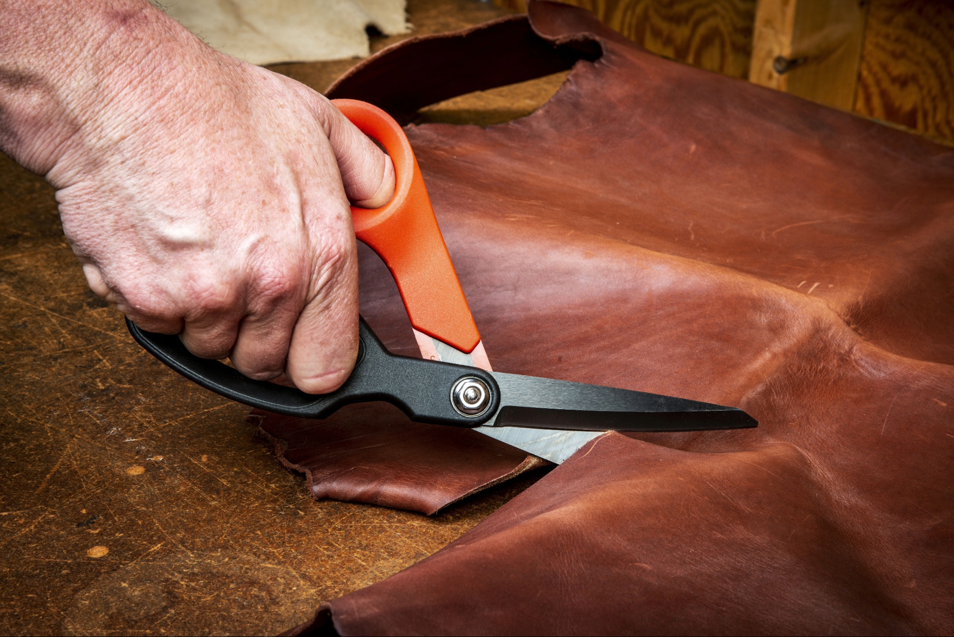 Offset handle design keeps hands above material for safety and easy table top cuts.