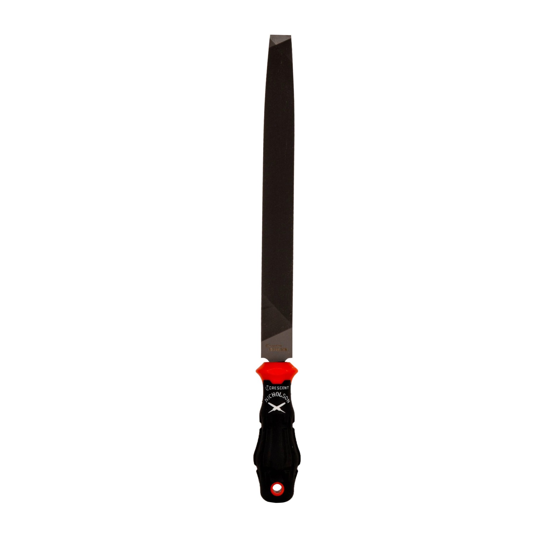 The Crescent Nicholson flat bastard file with an American pattern is ideal for machinists, machinery builders, ship and engine builders. The file can be used effectively by repairmen and others who require rapid removal of metal. The rectangular cross section allows you to smooth and sharpen straight surfaces, while the slight taper in width towards the file’s point creates ease of access in slots.