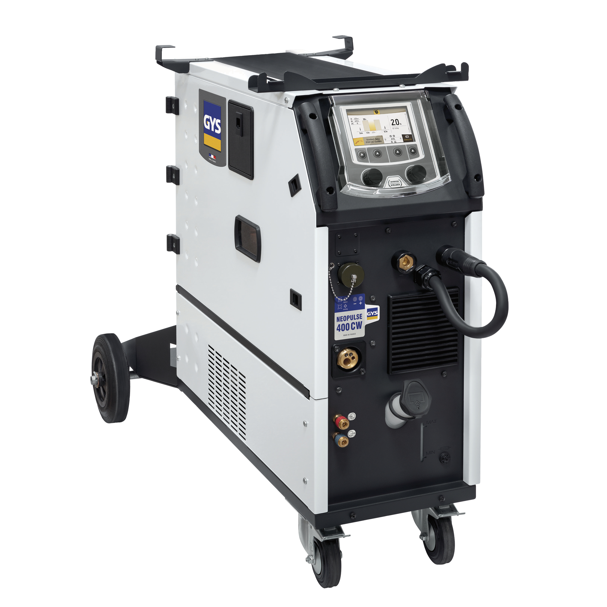 The NEOPULSE 400 CW is a threephase pulsed MIGMAG generator developed for heavy industryThe NEOPULSE 400 CW is mobile and equipped with a cooling unit and a powerful reeling system making it ideal forhandling demanding pulsed applications Both intuitive and highly practical its digital interface makes adjusting thewelding settings very easy