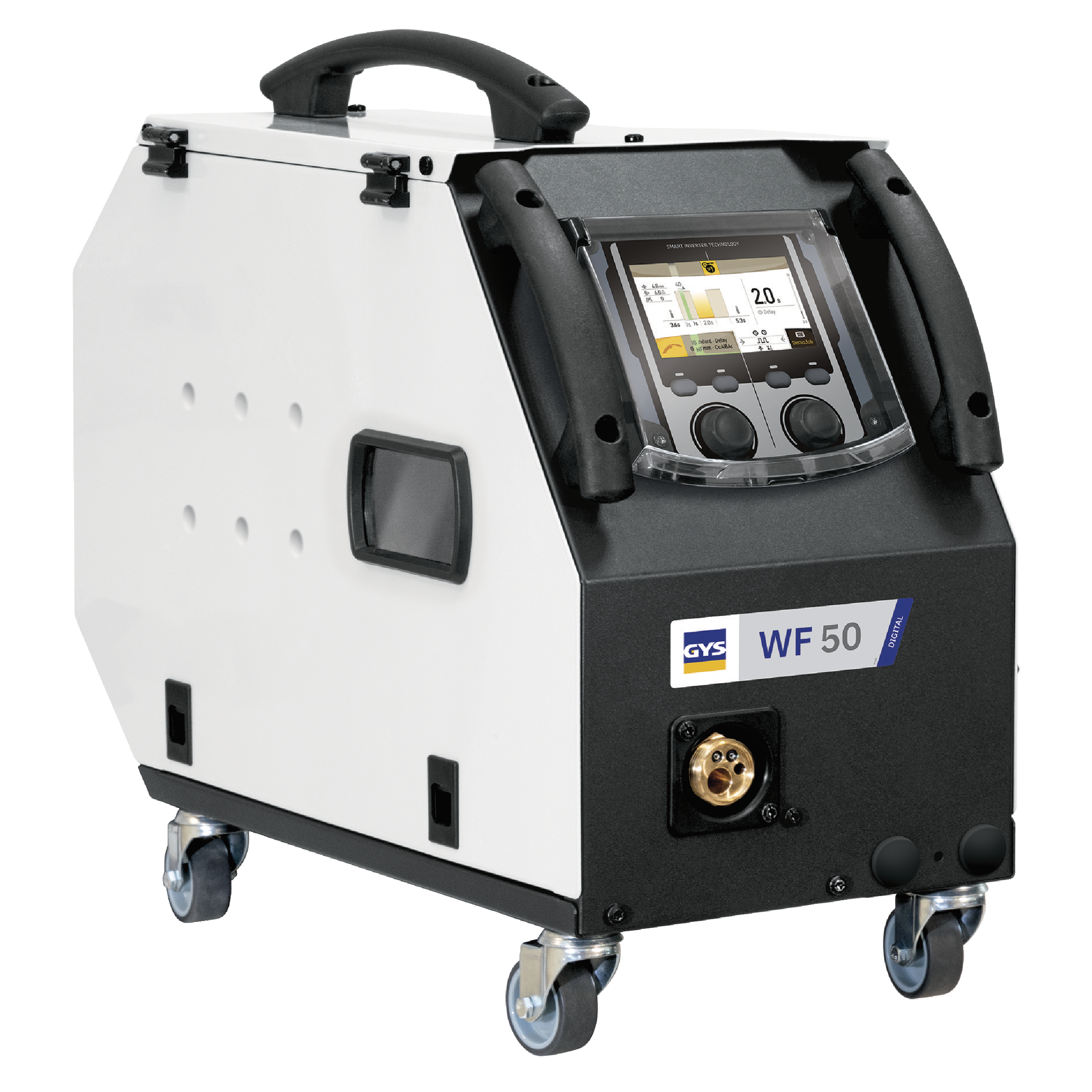 Designed to work with the KRONOS and NEOMIGi power supplies the WF 50 separate hose reel has a of 500 A at 60 Its 4 driven rollers and encoder control provide precise and Seamless welding wire regardless of the type of material Its 5 color screen is easy to access and its interface is Intuitive with 2 display modes Easy or ExpertPERFORMANCE MIGMAG steel and stainless steel wire Ø 06 to 12 mm aluminum wire Ø 08 to 16 mm CuSi and CuAl wire Ø 08 to 16 mm fluxcored wire polarity reversal Ø 09 to 24 mmOption amp ConsumablesTrolley 10m³ L ref 075498MIGiLink Beam Type F Rollers