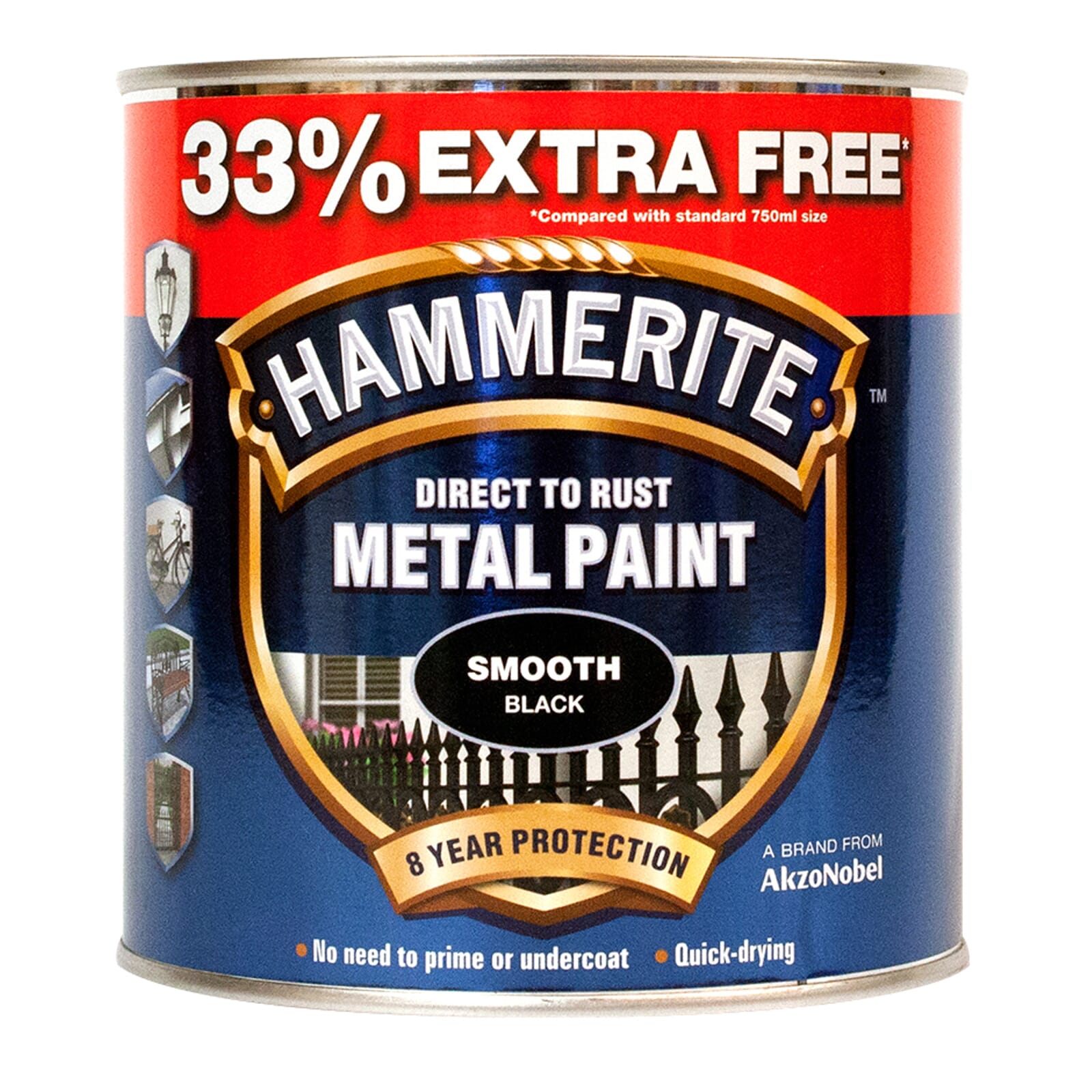 Hammerite Smooth 750ml Black (33% Extra Free)