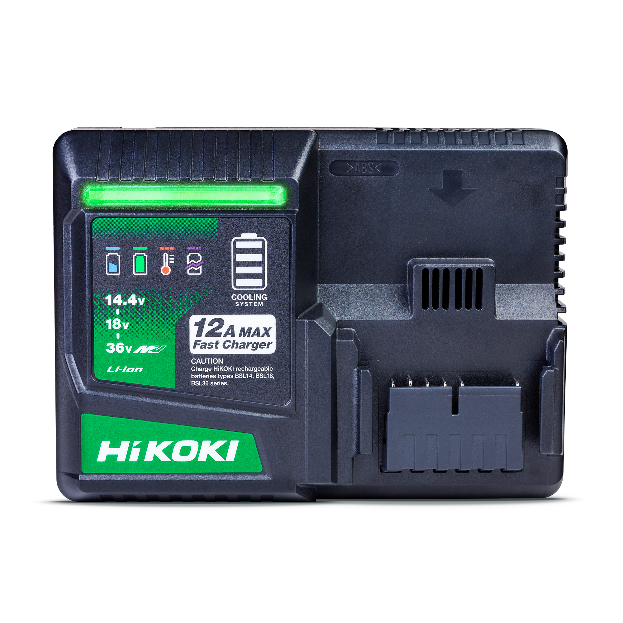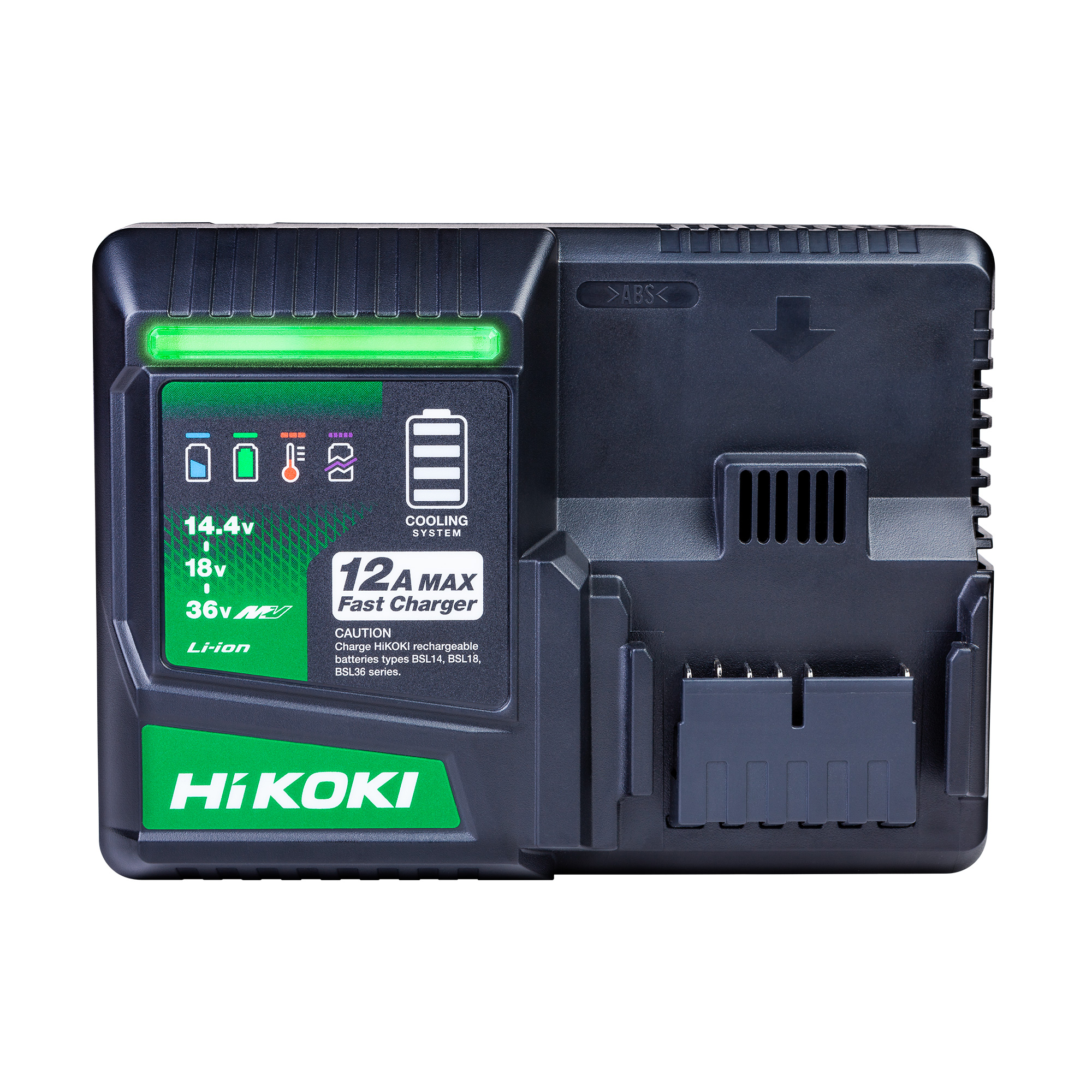 HiKOKI Unleash the new 12Amp Max Fast Charger delivering unparalleled lightening quick charging times with extra safety benefits. UC36YSL2 features the latest in cutting-edge colling systems and 3-way protection including overcharging and overheating technology.