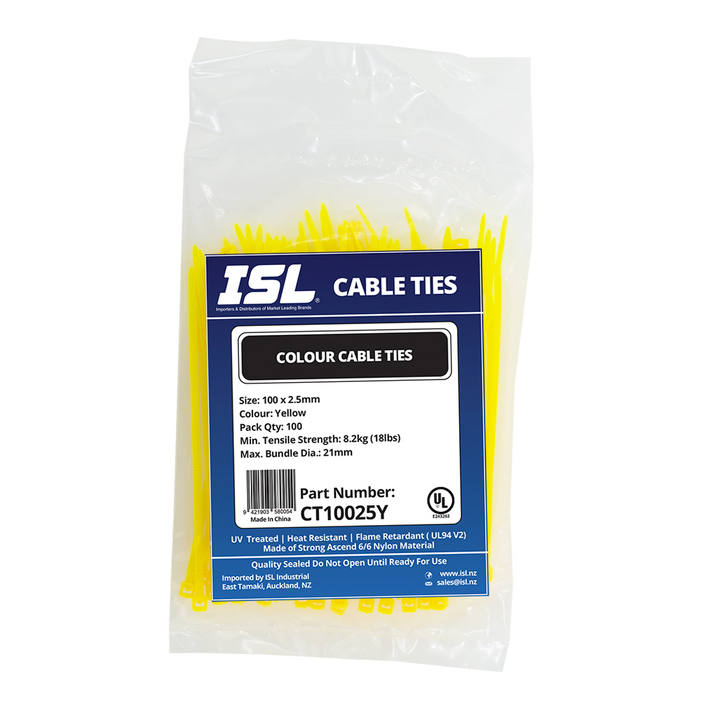 ISL 100 x 2.5mm Nylon Cable Tie – Yellow – 100pk