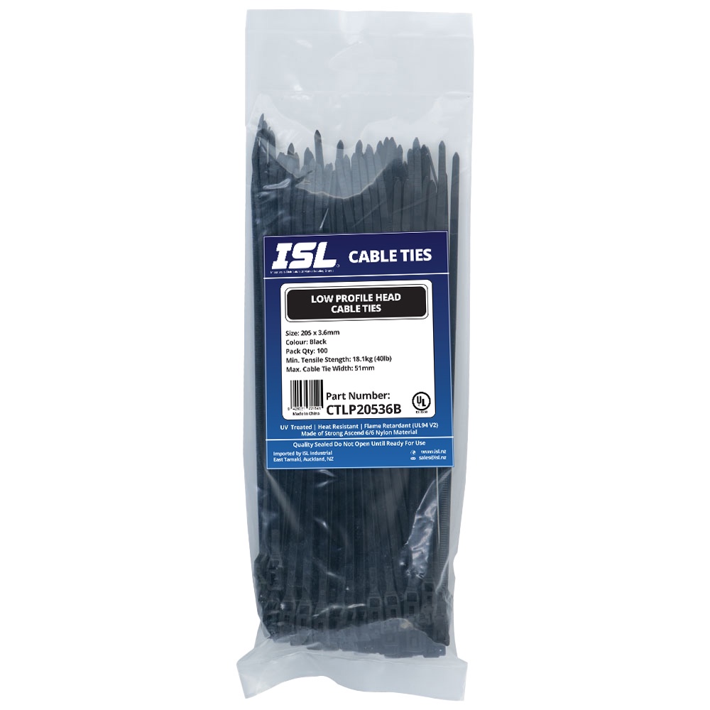 ISL 205×3.6mm Low Profile Cable Tie – UV Blk – 100pk