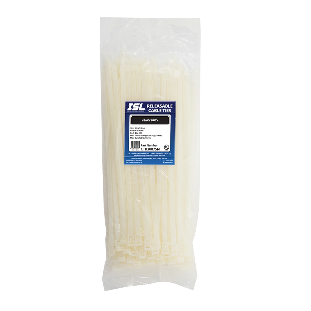 ISL 300 x 7.5mm Nylon Releasable Cable Tie – Nat – 100pk