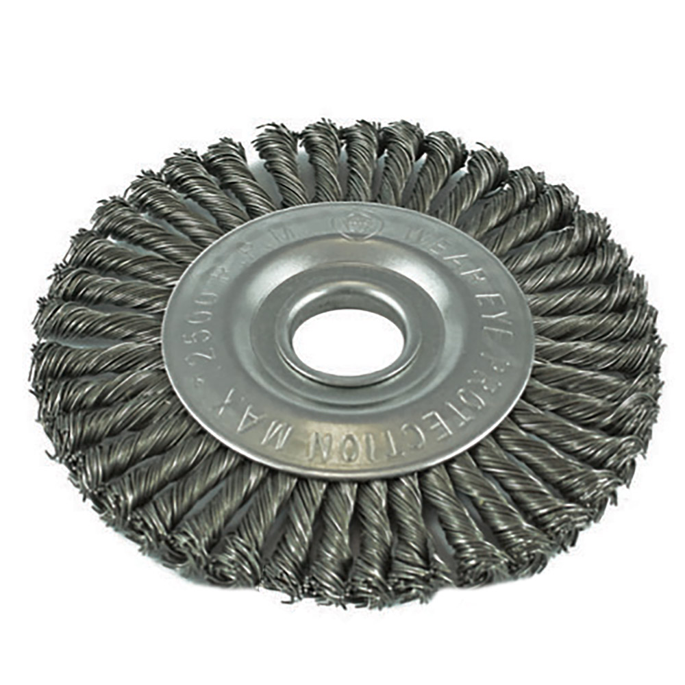 TM7004-125 | ITM Twist Knot Pipeline Wheel Brush Steel 125mm Specifications Material: Steel Wire Diameter: 125mm Thread: 22.2mm Bore Wire Diameter: 0.5mm Max RPM: 12 500