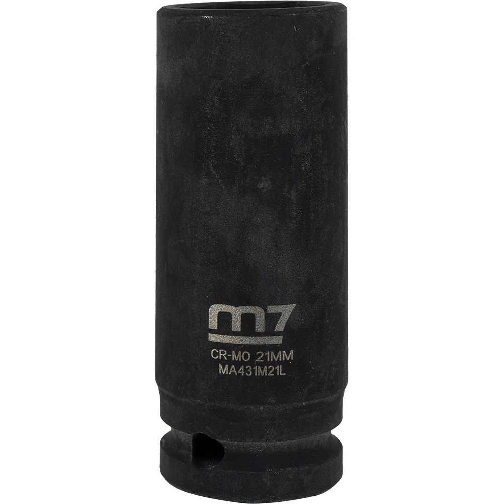 M7-MA431M21 | M7 Deep Impact Socket 1/2in Dr. 21mm Specifications Drive: 1/2 Diameter: 21mm Depth: 26mm Overall Length: 82mm