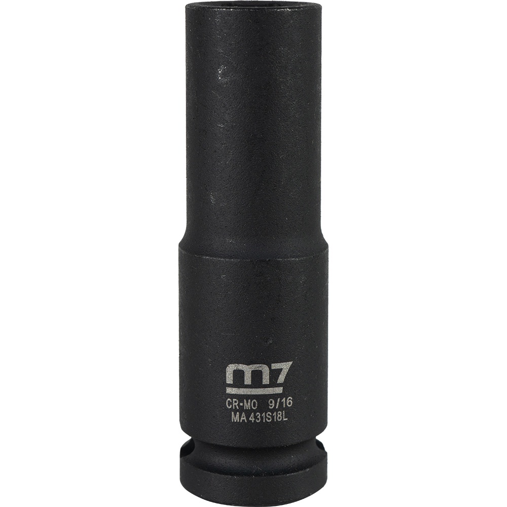 M7-MA431S18 | M7 Deep Impact Socket 1/2in Dr. 9/16in Specifications Drive: 1/2 Diameter: 9/16 Depth: 17mm Overall Length: 82mm
