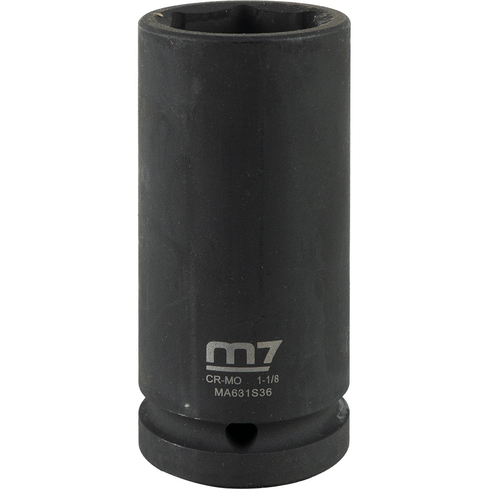 M7-MA631S36 | M7 Deep Impact Socket 3/4in Dr. 1-1/8in Specifications Drive: 3/4 Diameter: 1-1/8 Depth: 19mm Overall Length: 85mm