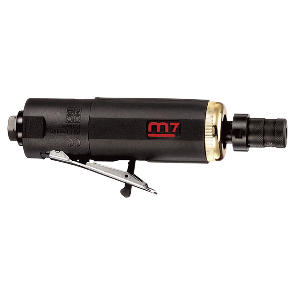 M7-QA210B | M7 Die Grinder 20000rpm Quick Release Chuck 1/4in Collet FEATURES Quick Release Collet Metal Front Cap Safety Lever Throttle SPECIFICATIONS Collet Size: 1/4 Free Speed: 20000 RPM Air Requirements: 10 CFM / 90 PSI Inlet: 1/4 Overall Length: 190mm Rated Power:0.9HP Net Weight: 0.65kg Sound Pressure: 75.7 dBA Vibration Level: 0.8m/s²