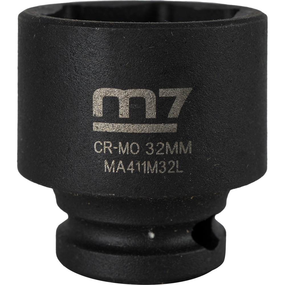 M7-MA411M32 | M7 Impact Socket 1/2in Dr. 32mm Specifications Drive: 1/2 Diameter: 32mm Depth: 20.5mm Overall Length: 46mm
