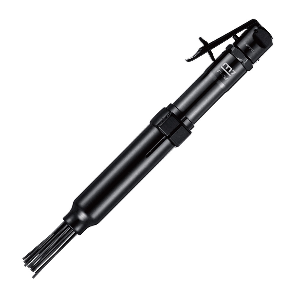 M7-SN1368 | M7 Needle Scaler 3 400bpm 28mm Stroke 3x180mm Needles Straight Style Features Quick release lock button Specifications Stroke Length: 27mm Blows Per Minute: 3400BPM Air Requirements: 16 CFM / 90 PSI Inlet: 1/4 Overall Length: 432mm Net Weight: 2.69kg Sound Pressure: 91 dBA Vibration Level: 13.7m/s²