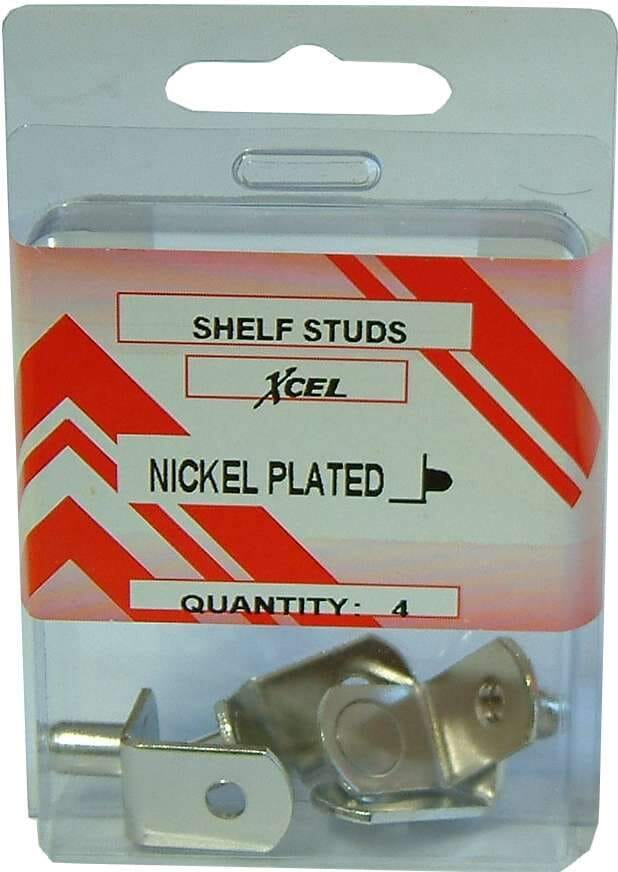 All metal shelf stud with a 6mm pin for supporting shelves in cupboards or cabinets. Use 4 per shelf for best stability.