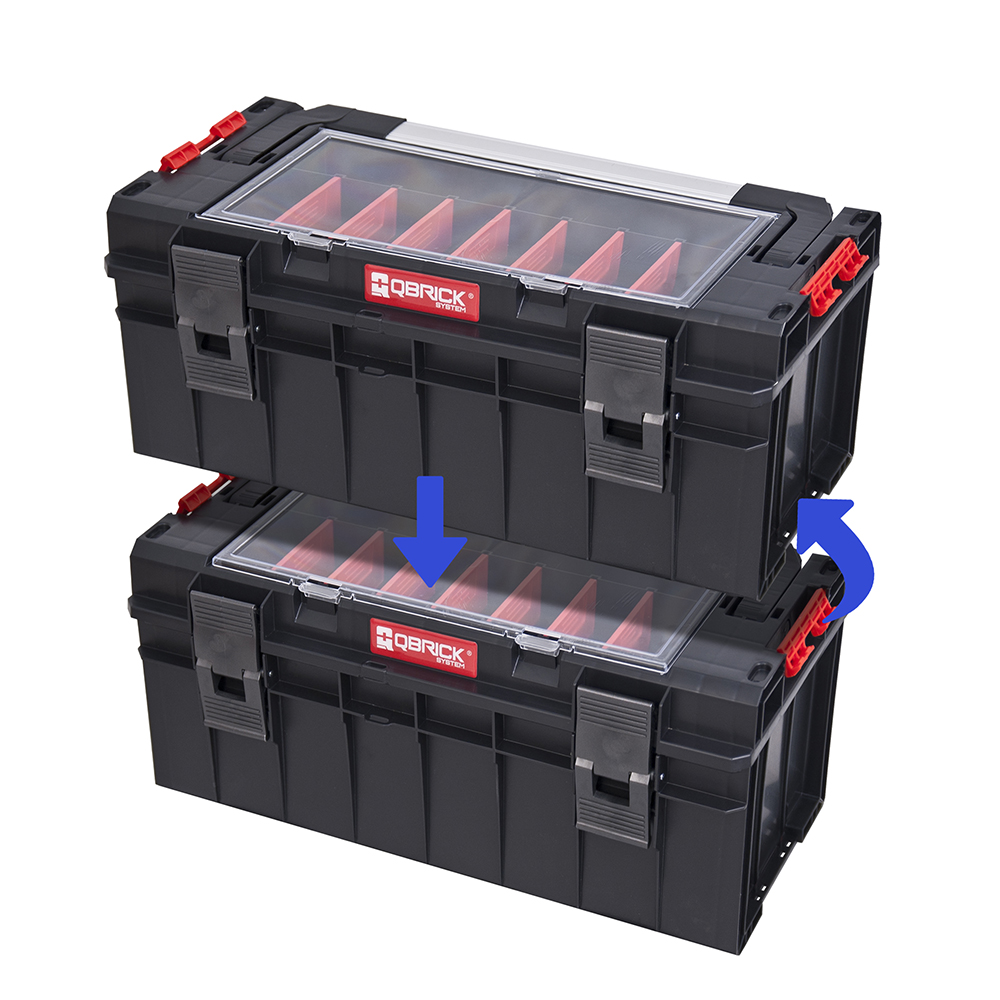 Full waterproofness, polyamide connectors for connecting the boxes with each other, strong structure, solid aluminium handle, large organiser in the lid with a polycarbonate transparent glass are the most important advantages of this model.