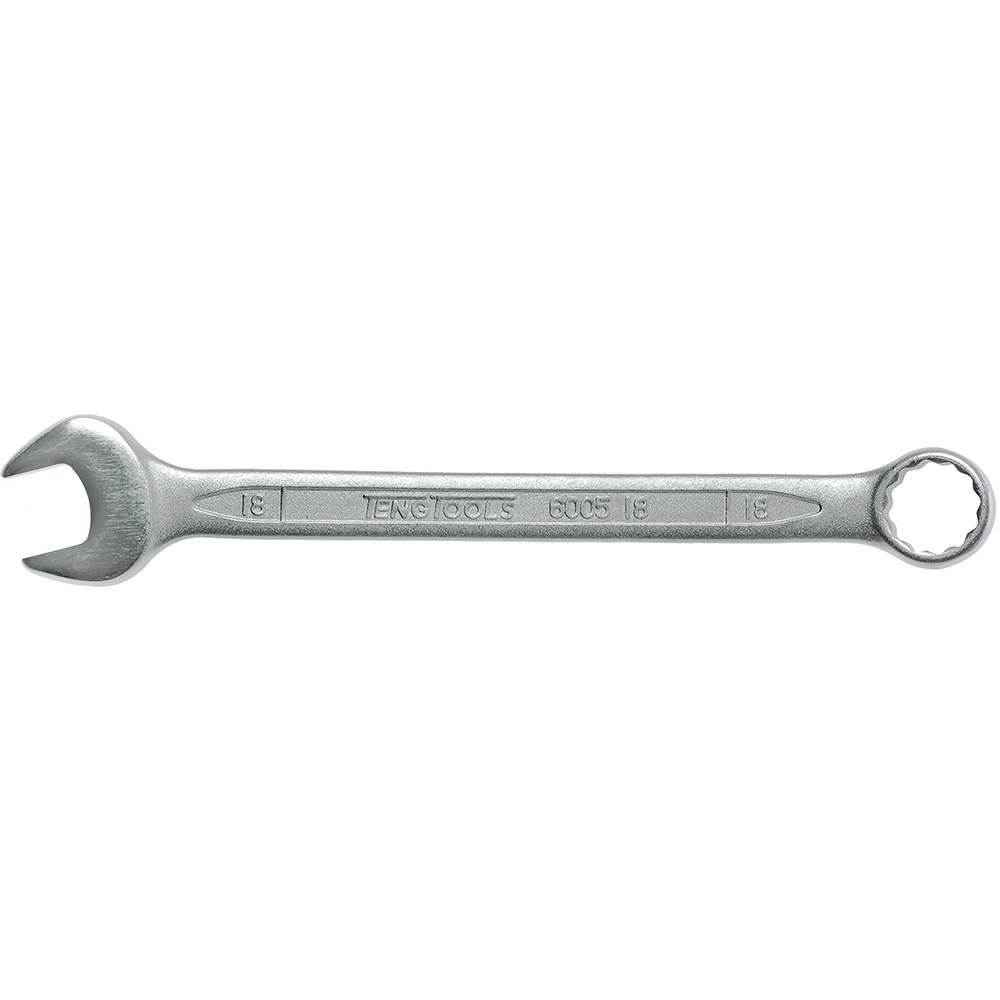 TengTools Combination Spanner 600518 – 18mm Manufactured and designed in accordance with DIN3113A from high grade Chrome Vanadium Steel. Same dimensions at both ends. The 12 point ring end is set at a 15° angle. Hip grip ring ends to drive on the flat rather than the corner to help avoid damage to fastenings and to enable use on previously damaged fastenings. Polished heads. Satin finish.