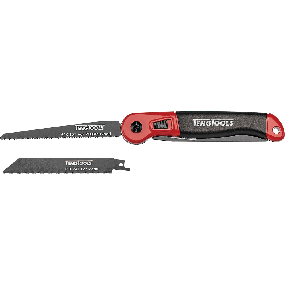 703A|Teng Folding Utility Saw Quick change blade function. The blade can be adjusted in 3 positions (135° 180° 225°) Hole in the handle for hanging or securing. Ergonomic handle with soft material. Accepts all Sawzall blades for increased versatility
