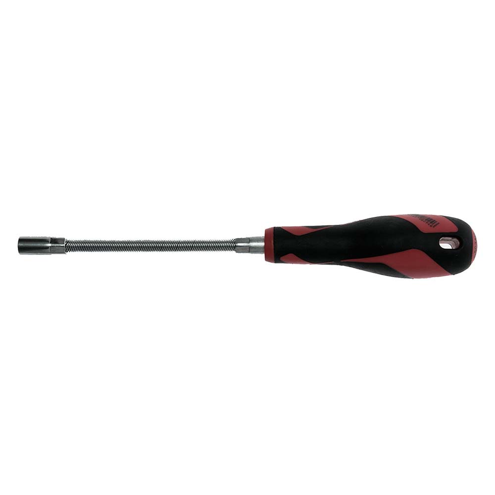 MEGA DRIVE 275MM HOSE CLIP DRIVER 8MM With flexible steel spiral. Double socket with 8mm 6-point opening adapted for hose clips. Ergonomic two components handle with hanging hole.
