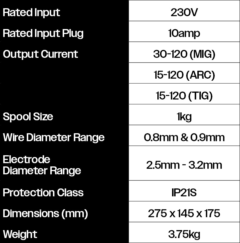No Gas, No Hassle: 120 amp Gasless MIG for ultimate convenience.