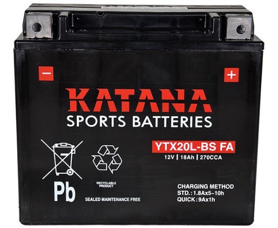YTX20L-BS FA Katana Premium Maintenance Free VRLA 12Volt Motorcycle Battery 270CCA 175x87x155